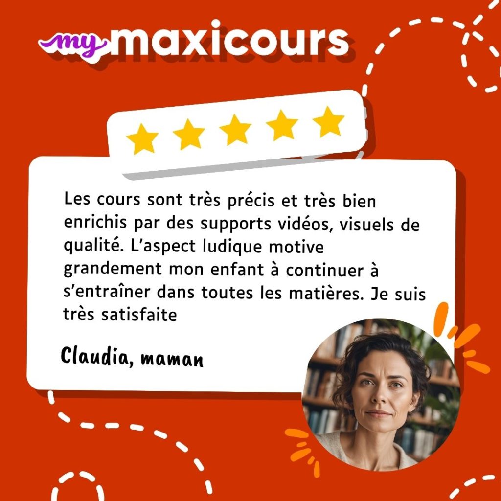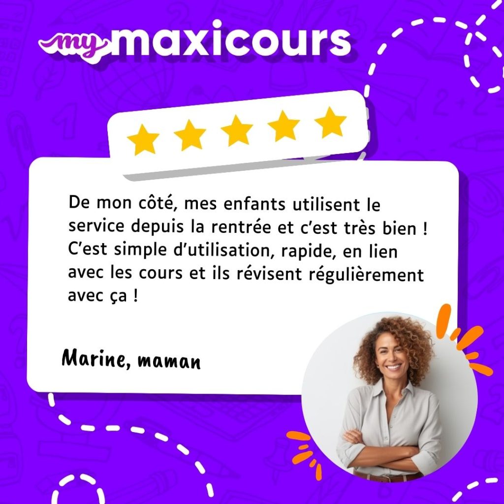 Et si vous sentez que votre accompagnement n’est pas suffisant, pas de panique ! La plateforme de soutien scolaire en ligne myMaxicours dispose d’une multitude de ressources pour l’aider à apprendre et à progresser. Le tout en s’amusant et sans stress.