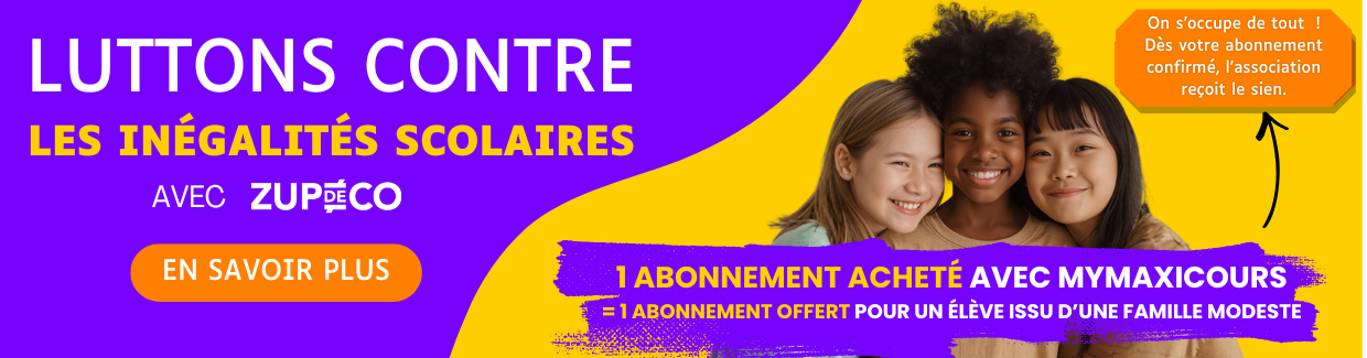 Et si vous sentez que votre accompagnement n’est pas suffisant, pas de panique ! La plateforme de soutien scolaire en ligne myMaxicours dispose d’une multitude de ressources pour l’aider à apprendre et à progresser. Le tout en s’amusant et sans stress.