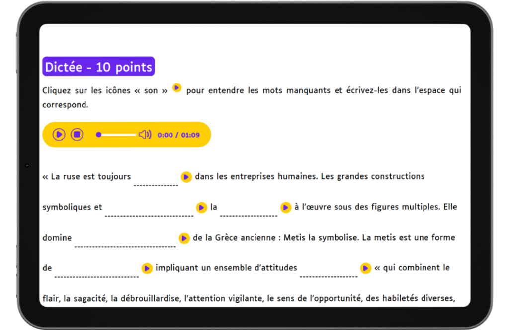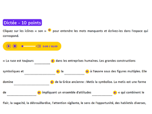 - La dictée, avec entraînements et rappels de règles ;