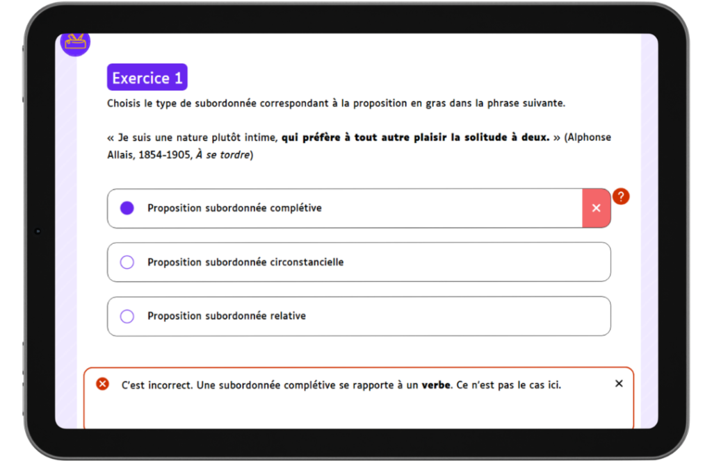 Chaque exercice est corrigé immédiatement, avec des explications simples, pour apprendre de ses erreurs.