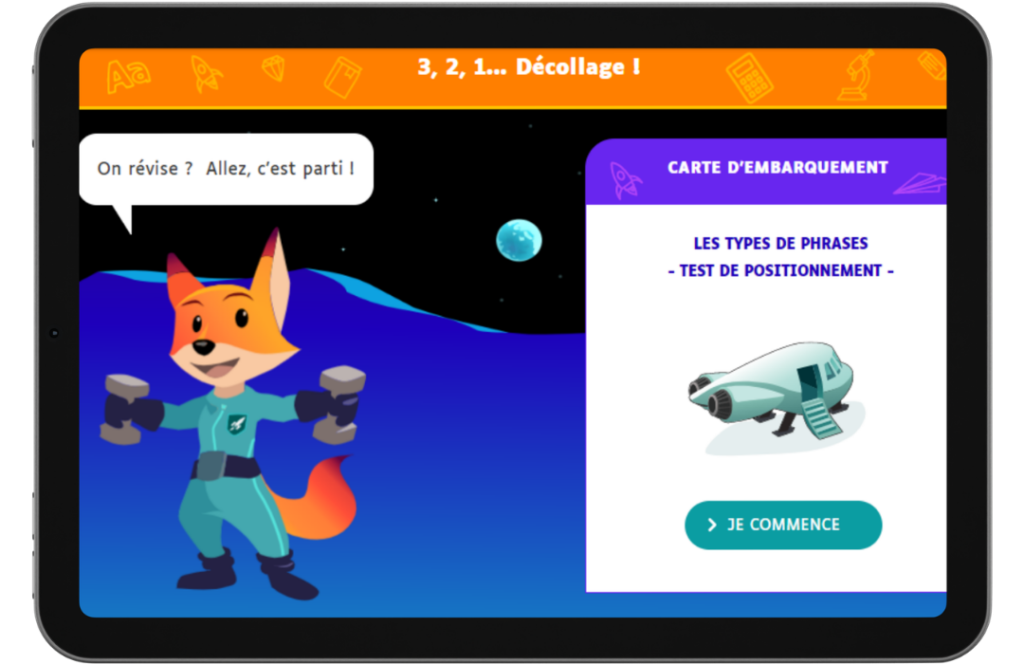 Votre enfant commence par un test rapide qui identifie son niveau actuel et les notions à revoir.