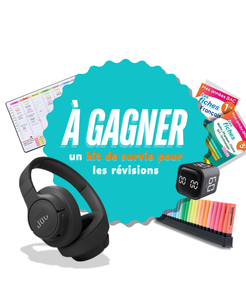 Du 1er avril au 4 mai 2026, tentez votre chance pour remporter le kit de survie spécial révisions ! Casque audio JBL, surligneurs, annales, timer, planning de révisions… tout ce qu’il faut pour booster la concentration, l’organisation et la motivation pendant cette période clé.