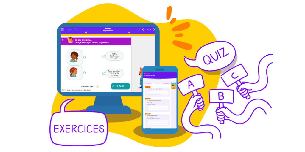 Nous savons que les premières années du Primaire sont dédiées à l’apprentissage de la lecture. C’est pourquoi, pour les classes du CP au CM2, les leçons et exercices sont disponibles sous format audio en complément du format écrit. Ainsi, peu importe leur niveau de lecture, tous les élèves sont ainsi en capacité de comprendre les consignes, en les lisant ou en les écoutant, et répondre aux questions.